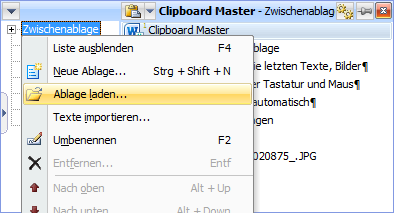 Sie können die Ablage auch über das Kontextmenü laden: